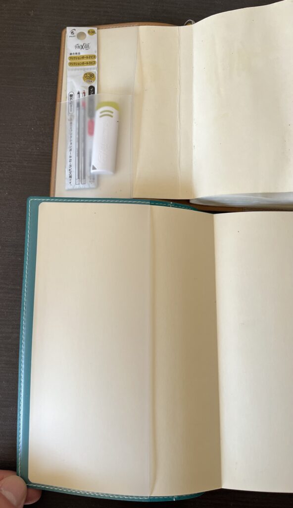 ただ、ひとつショックなことが!裏表紙にあったポケットが無くなってしまいました。ここに、フリクションボールペンのリフィルや消しゴムを入れていたんですが…。でも、カバンの中でよく落ちていたから、筆箱を別に持ち歩いたほうがいいかも。