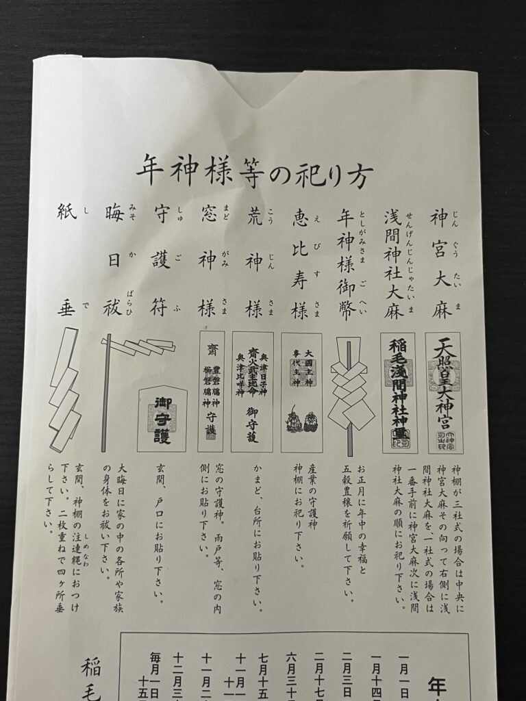 新年に向けて神棚に祀るお札などがセットになった「年神様セット」という便利なものがありましたので、お受けいたしました。