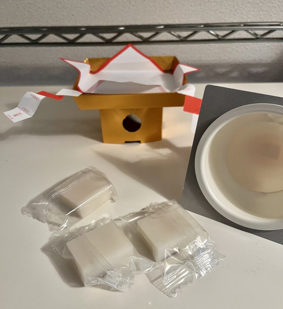 11日には、鏡開きを行いました。今年はたいまつ食品と越後製菓のものを購入。たいまつ食品のものは紅白の丸餅、越後製菓のものは角餅が入っていました。