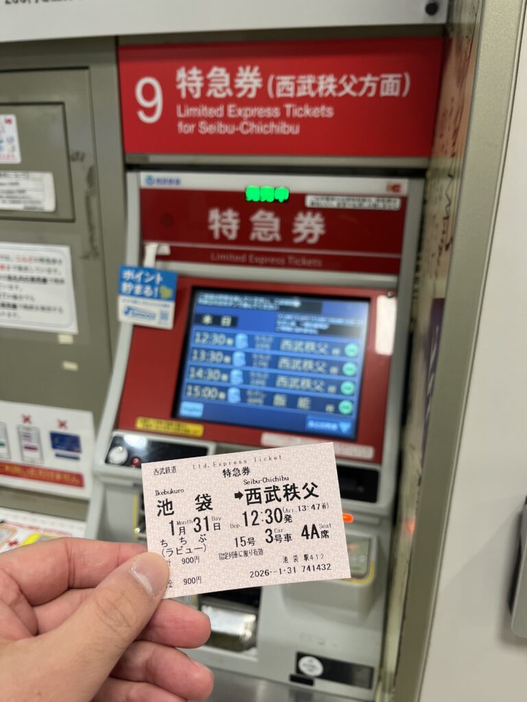 結局、最初に買った特急券は無駄になり、倍額を払う羽目に。西武特急ラビュー号は快適なのに、特急券はなんと900円と格安なので、その点はちょっと助かりました。