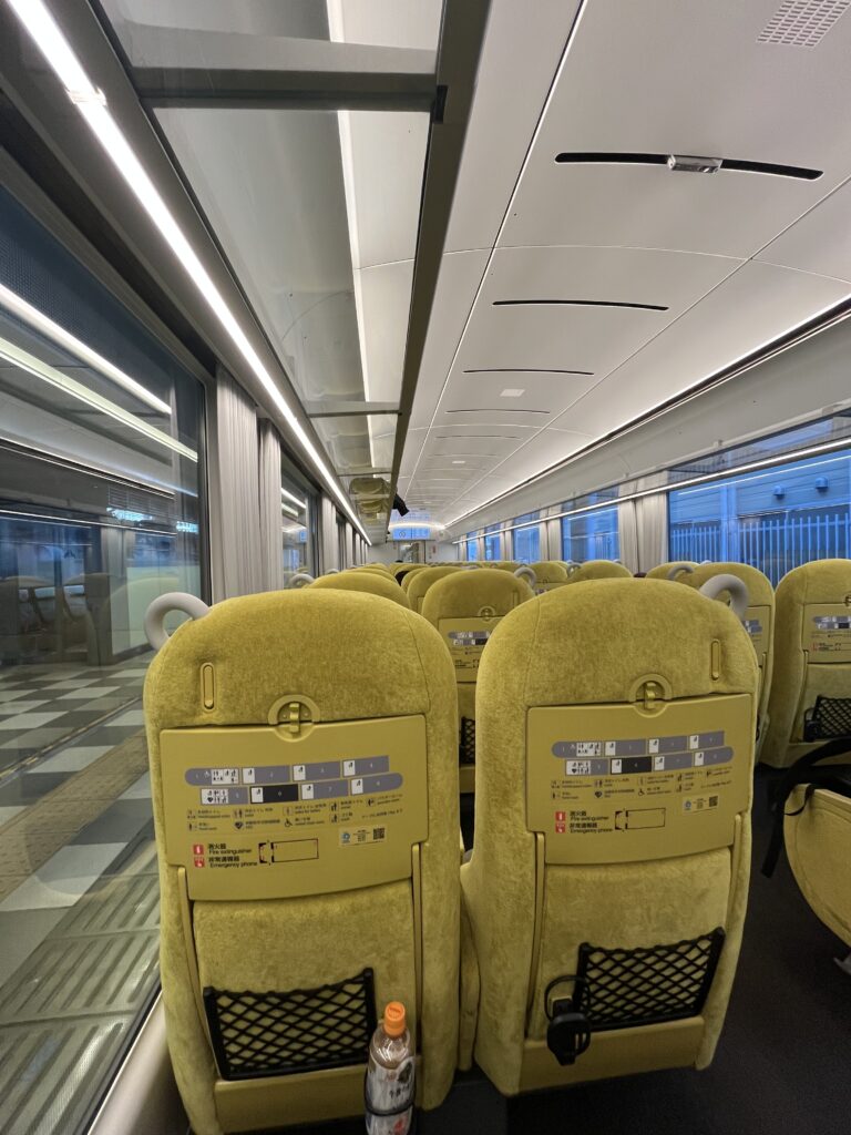 大きな窓に、ゆったりした座席のラビュー号。全車指定席で、快適そのもの。