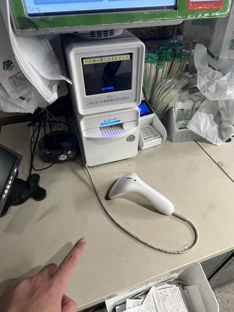 普段はQR決済をするときは、スマホを手に持ったままバーコードをスキャンするのですが、両手にバンとペットボトルを持っていたため、スマホを台に置いて、スキャナーでスキャンしたのでした。これが失敗でした。
